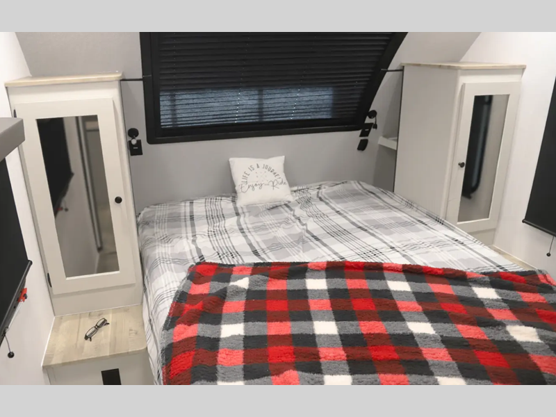 Sleeps 4 Slides 2 Furnace BTU 25000 btu Available Beds Queen Refrigerator Type 12V Refrigerator Size 10 cu ft Cooktop Burners 3 Shower Size 30" x 36" Number of Awnings 1 LP Tank Capacity 20 lbs Water Heater Type Tankless On Demand TV Info Smart TV Awning Info Power w/LED Light Axle Count 2 Number of LP Tanks 1 Shower Type Standard Similar Floorplans