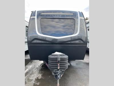 This is the perfect couple's travel trailer! You will enjoy the added space in the living area because of the slide that holds the theater seating with USB charging ports to charge your phone while you recharge relaxing! Another convenient feature is the swing arm TV to adjust better to view your favorite show. You will be quite surprised to find a king-size bed in the front bedroom, along with dual closets with clothes rods to keep your things organized. A pass-through storage on the exterior allows you to bring along extra gear, and the interior is kept cozy on chilly fall evenings with the 34" fireplace. Enjoy some quality time even outdoors when traveling under the 20' awning with LED lights.