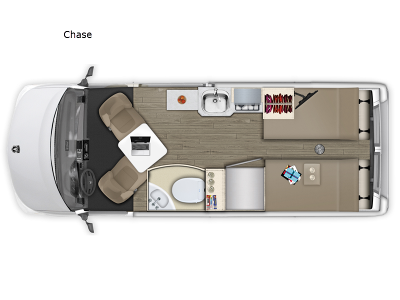 Chase your outdoor excursions in this comfortable motorhome for two! You will find side-facing rear power sofas that can convert to twin beds or a king-size bed for your comfort. If you're needing more sleeping space, just add the optional folding mattress for the front captain's seats! You can prepare at-home meals in the galley that features a two-burner propane stove, a 5-cu. ft. refrigerator, plus a counter extension with a charging station for your tablet or phone. After you've freshened up in the convenient wet bath, head outdoors for the day to enjoy the sunshine. When you return, you can make popcorn in the microwave oven and watch a movie on the 24" Smart TV!